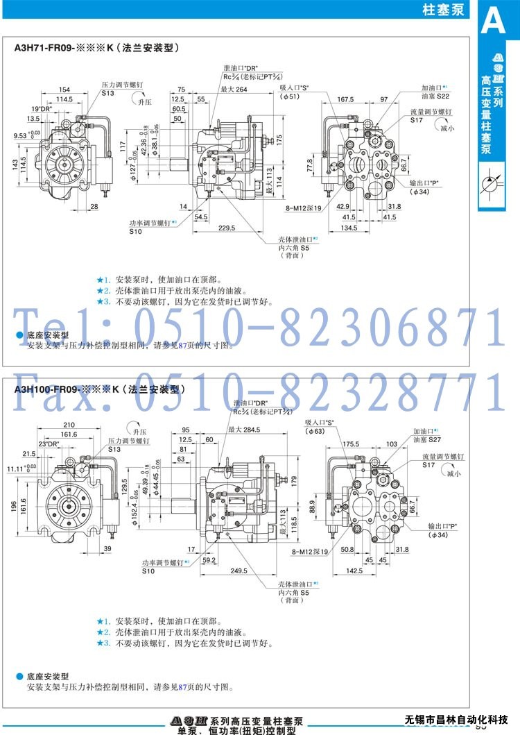 A3H71-FR09-15A6K-10,A3H71-LR09-15A6K-10,A3H71-FR09-18.5A6K-10,高壓變量柱塞泵