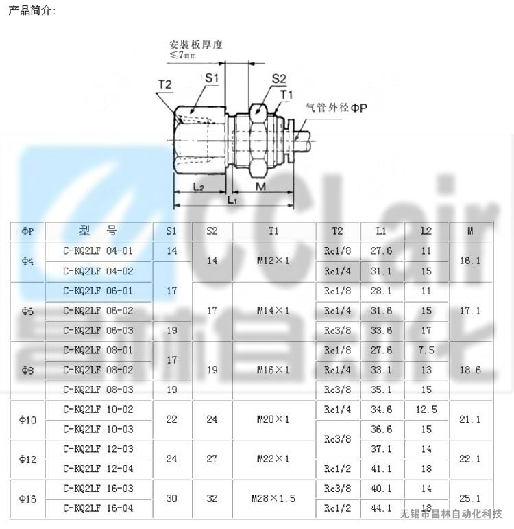 C-KQ2LF12-04,C-KQ2LF16-03,C-KQ2LF16-04,隔板安裝直通螺紋內(nèi)接頭,生產(chǎn)廠家,價(jià)格