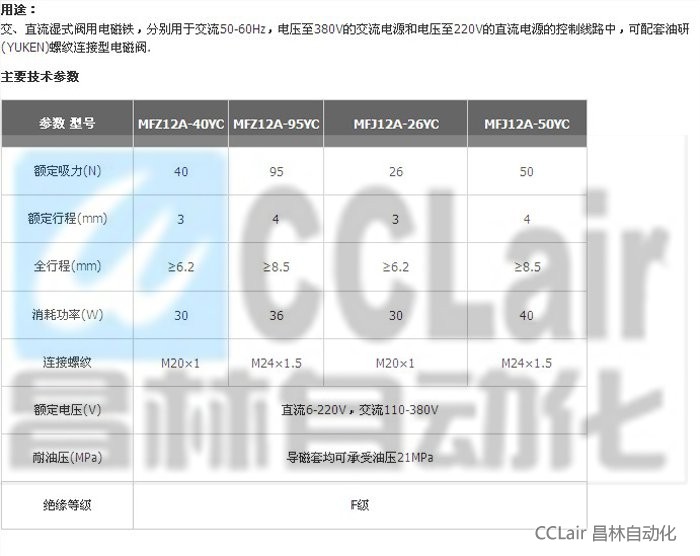 MFZ12A-40YC,MFZ12A-95YC,直流濕式閥用電磁鐵,生產(chǎn)廠家,價(jià)格
