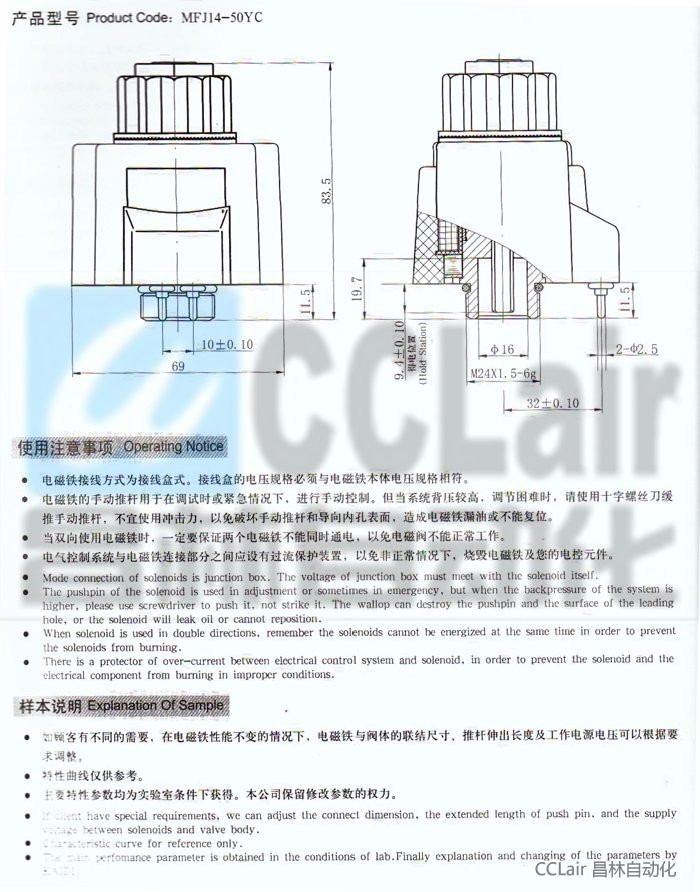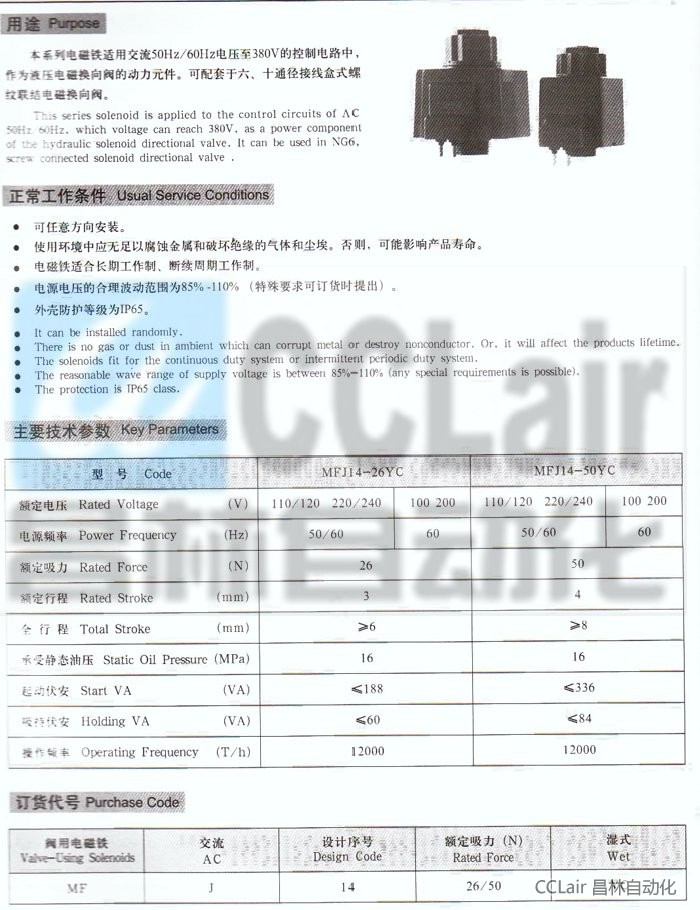 MFJ14-26YC,MFJ14-50YC,交流(接線盒式)濕式閥用電磁鐵