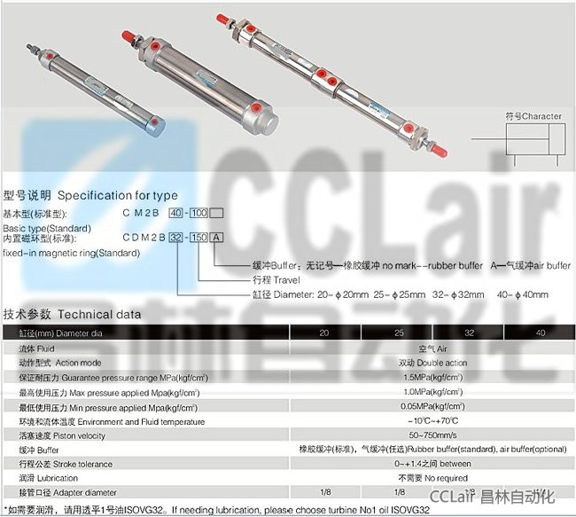 CM2B40-50,CM2B40-75,CM2B40-80,CM2B40-100,CM2B40-125,CM2B40-150,CM2B40-160,