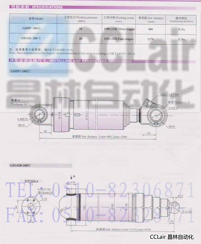 GD597-100Ⅲ,GD1428-200Ⅳ,多級(jí)液壓缸