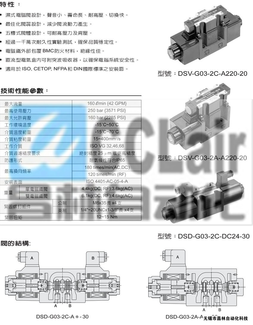 DSV-G03-11N,DSV-G03-22N,DSV-G03-31N,DSV-G03-33N,濕式電磁鐵操作換向閥