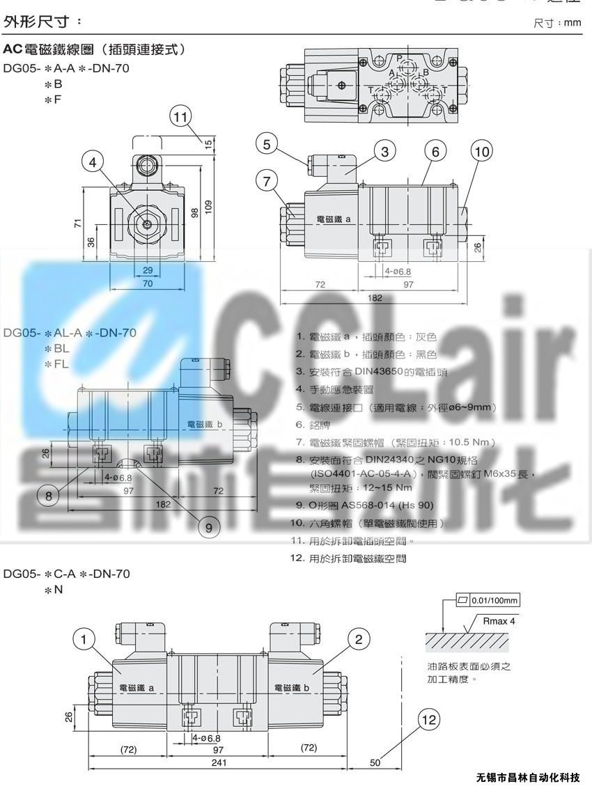 DG05-2B,DG05-3B,DG05-5B,DG05-6B,DG05-7B,DG05-8B,DG05-11B,濕式電磁鐵操作換向閥
