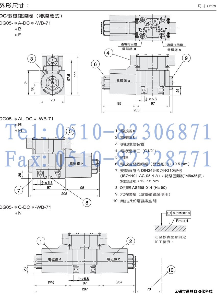 DG05-8A,DG05-11A,DG05-22A,DG05-31A,DG05-33A,DG05-0AL,DG05-1AL,濕式電磁鐵操作換向閥