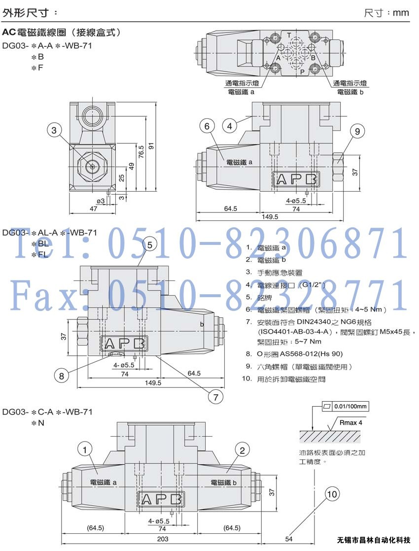 DG03-3BL,DG03-5BL,DG03-6BL,DG03-7BL,DG03-8BL,DG03-11BL,DG03-22BL,濕式電磁鐵操作換向閥