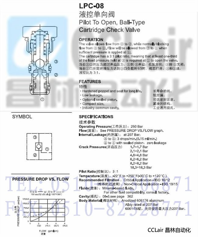 LPC-08-VS-1.7,LPC-08-VS-2.1,LPC-08-VS-4.8,LPC-08-VS-6.2,液控單向閥,