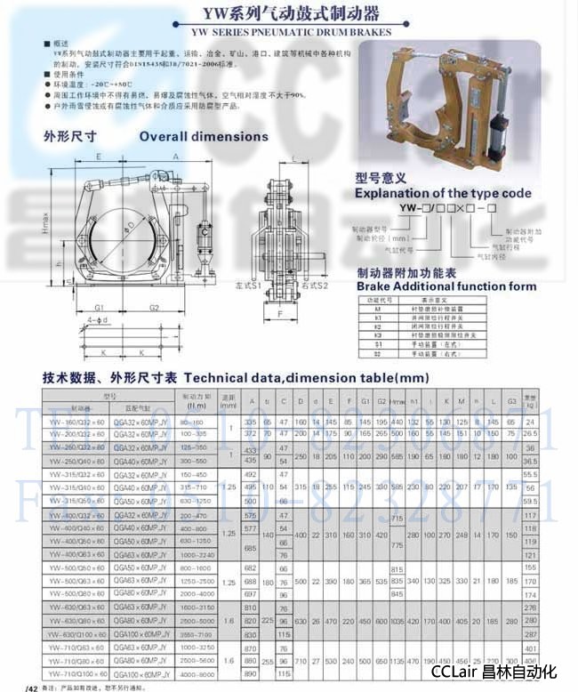 YW-630/Q80×60,YW-630/Q100×60,YW-710/Q63×60,氣動鼓式制動器