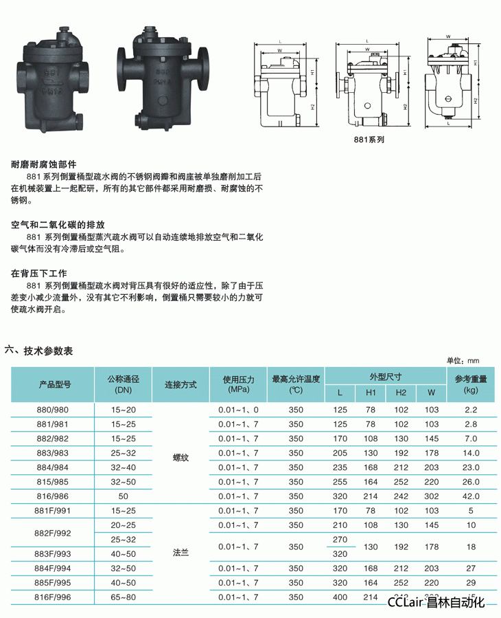 880,881,882,883,884,885,816,倒置桶式蒸汽疏水閥