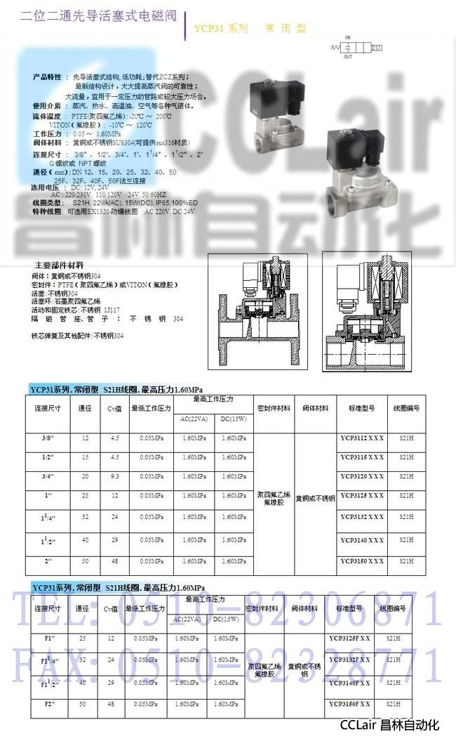 YCP3140,YCP3150,YCP3125F, YCP3132F, YCP3140F,YCP3150F,二位二通先導活塞式電磁閥