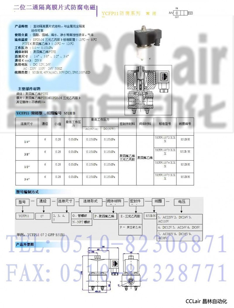 YCFP11072,YCFP11073,YCFP11075,YCFP11074,二位二通直動隔離膜片式電磁閥