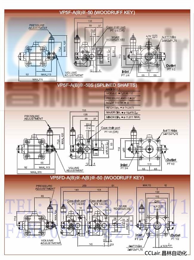 VP5F-A3-50,VP5F-A5-50,VP5F-B3-50,可變?nèi)萘咳~片泵浦