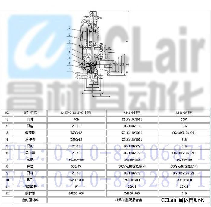 產(chǎn)品特點: A48SH-40~160型適用于工作溫度≤425℃,A48SH-40~64I型適用于工作溫度≤510℃,A48SH-100V~160V型適用于工作溫度≤550℃的蒸汽等介質的設備和管路上,作為超壓保護裝置。 主要零部件材料: