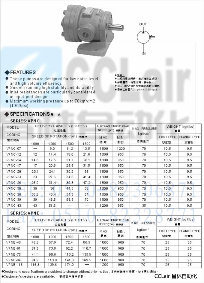 VPNC-43,VPNE-48,VPNE-61,VPNE-75,VPNE-94,VPNE-116,固定容量葉片泵,