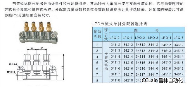 LPQ-0,LPQ-1,LPQ-2,LPQ-3,LPQ-4,LPQ-5,節(jié)流式單排分配器