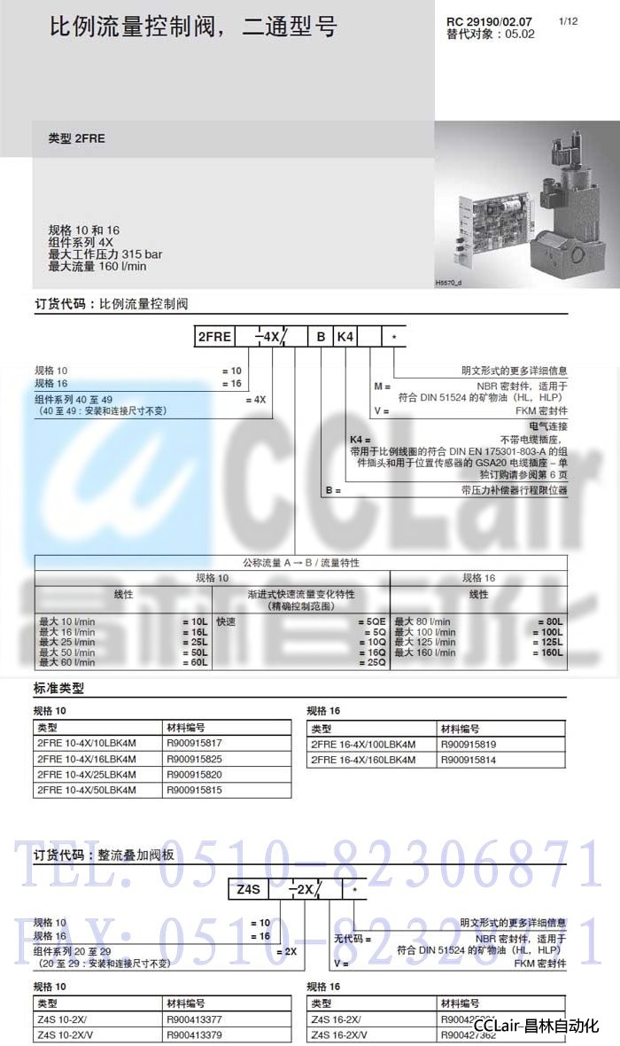 2FRE16-4X/160LBK4M,2FRE16-4X/160LBK4V, 比例流量控制閥,力士樂REXROTH,德國力士樂