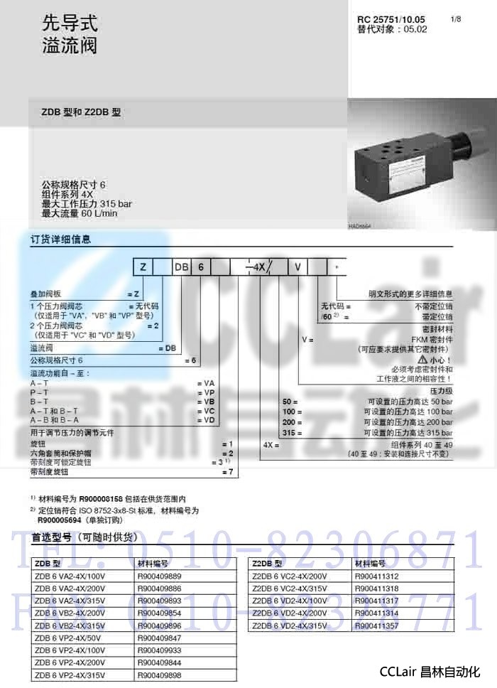 ZDB6VA1-4X/315V,ZDB6VA2-4X/50V,ZDB6VA2-4X/100V,,先導(dǎo)式溢流閥,力士樂REXROTH,德國(guó)力士樂