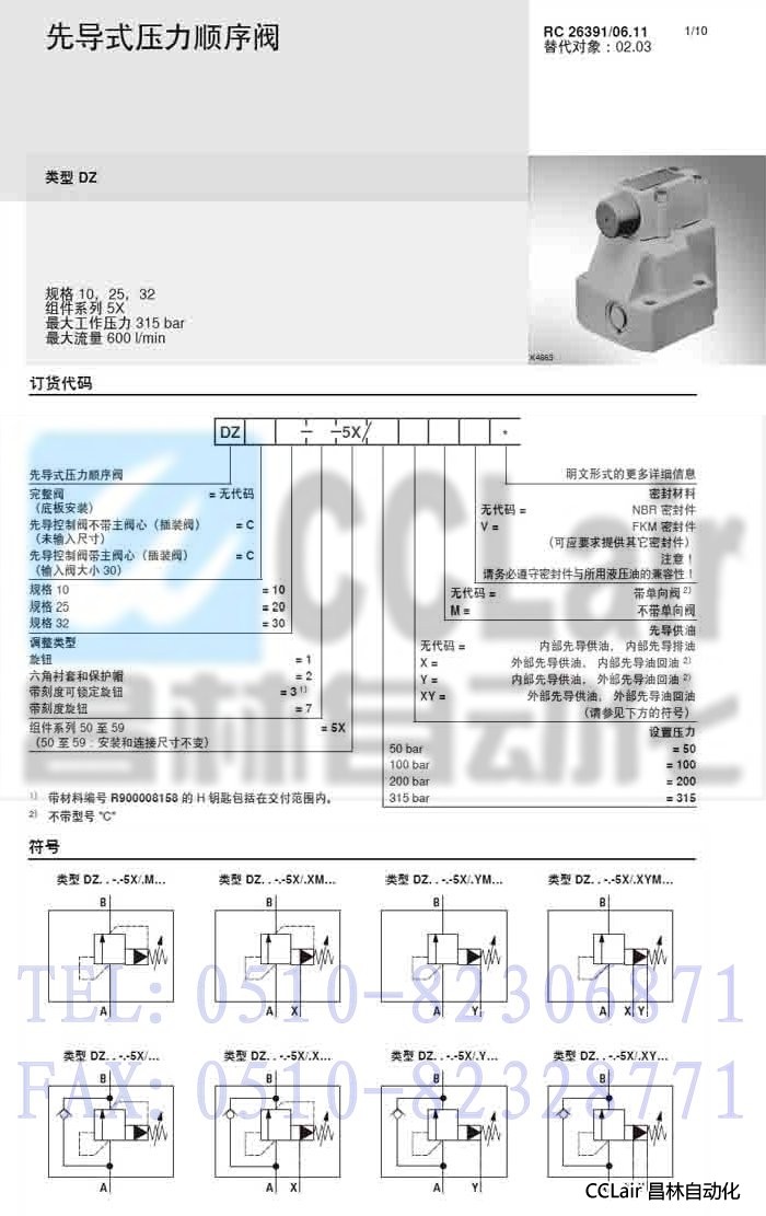 DZ10-1-5X/50,DZ10-1-5X/50V,DZ10-1-5X/50M,先導(dǎo)式壓力順序閥,力士樂REXROTH,德國力士樂