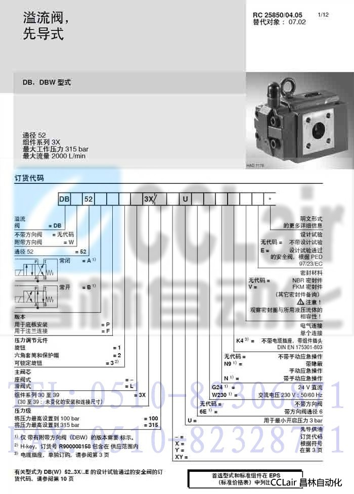 DB52F1-3X/100U,DB52F1-3X/315U,DB52F1-3X/315XU, |