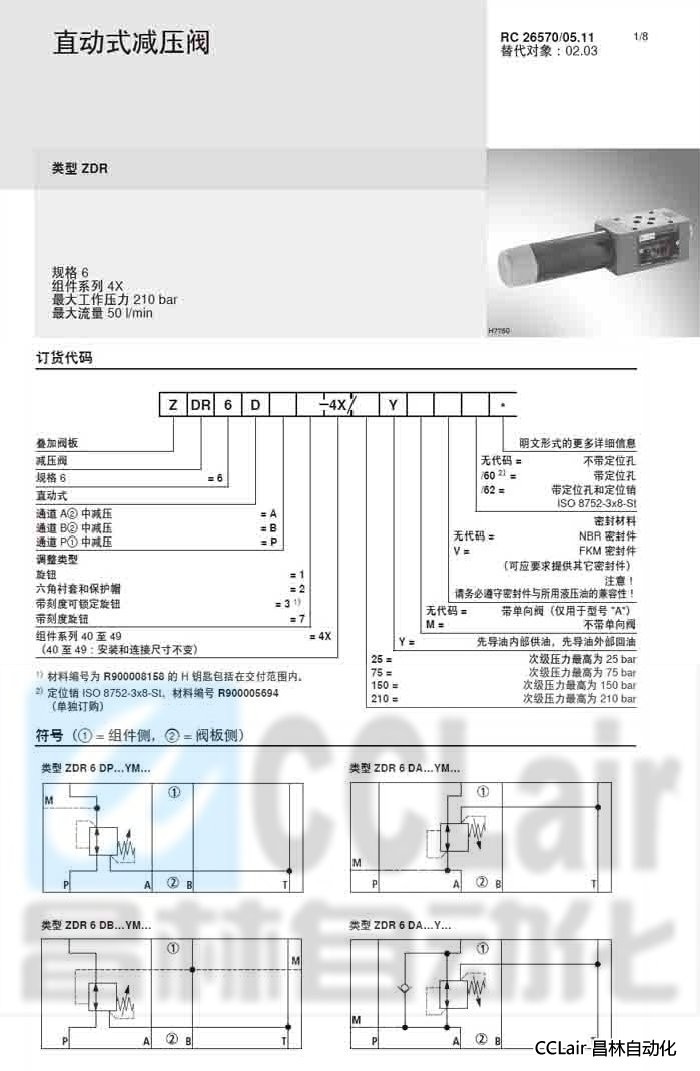 ZDR6DA1-4X/210YM,ZDR6DA1-4X/210YMV,ZDR6DA1-4X/210Y ,直動式減壓閥,力士樂REXROTH,德國力士樂 |