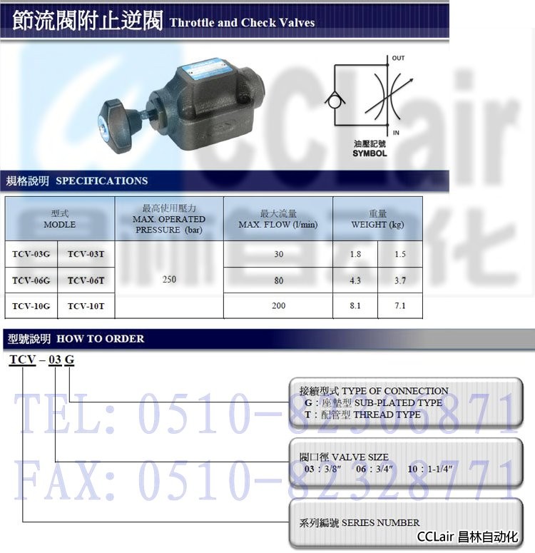 TCV-03G,TCV-03T,TCV-06G,TCV-06T,TCV-10G,TCV-10T,節(jié)流閥附止逆閥 |