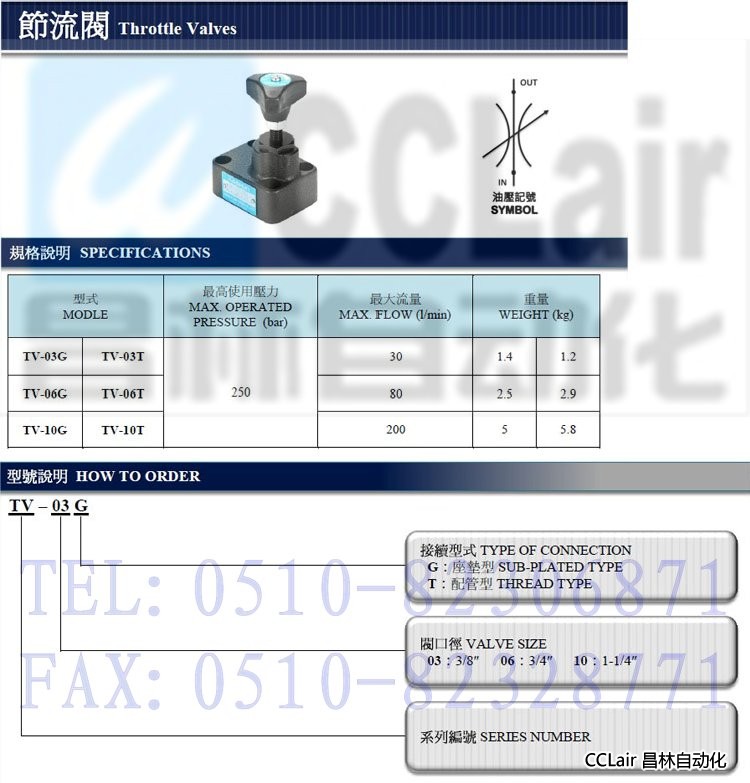 TV-03G,TV-03T,TV-06G,TV-06T,TV-10G,TV-10T,節(jié)流閥