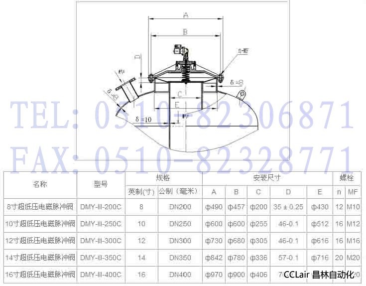 DMY-III-200C,DMY-III-250C,DMY-III-300C,DMY-III-350C,DMY-III-400C,電磁脈沖閥
