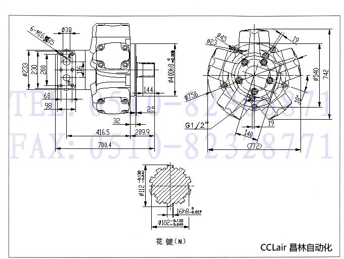 (1)結(jié)構(gòu)簡(jiǎn)單。由于去掉連桿等傳動(dòng)零件,使結(jié)構(gòu)大為簡(jiǎn)化; 型號(hào) TYPE UNIT MRC4500 排量 DISPLACEMENT 公稱排量 Nominal displacement L/r 4.50 理論排量 Displacement L/r 4.5027 扭矩 TORQUE 理論單位扭矩 Theoretical specific Toque ×10-5 N.m/Pa 71.70 公稱扭矩 Nominal torque N.m 15049 壓力 PRESSURE 最大連續(xù)輸入壓力 Max.Continuous input pressure ×105Pa 210 最大間斷輸入壓力 Max.Intermittent input pressure ×105Pa 250 峰值壓力 Max.peak input pressure ×105Pa 300 最大壓力差 Max.pressure difference ×105Pa 250 最大內(nèi)腔壓力 Max.Intracavity pressure ×105Pa 5 轉(zhuǎn)速 SPEED 最大轉(zhuǎn)速 Max.Speed r/min 160 功率 POWER 最大功率 Max.Continuous Power kw 166 重量 Weight Kg 550