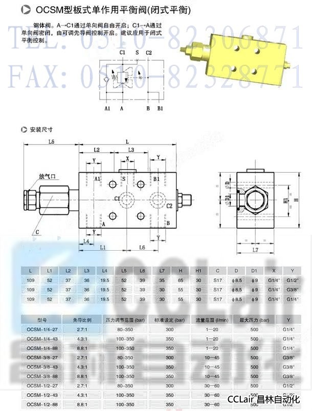 OCSM-1/4-27,OCSM-1/4-43,OCSM-1/4-88,板式單作用平衡閥(閉式平衡)