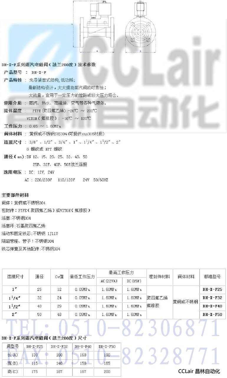 DH-X-F25,DH-X-F32,DH-X-F40,DH-X-F50,蒸汽電磁閥