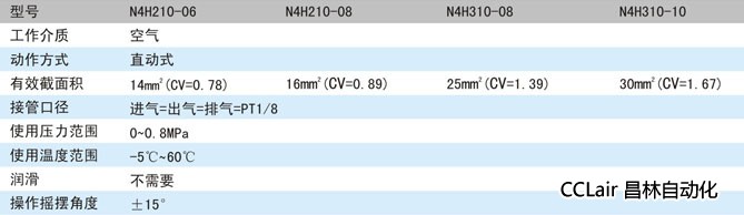 N4H系列手板閥用于工作溫度-5℃~60℃、免潤滑、介質(zhì)為經(jīng)過濾、干燥后的清潔空氣、工作壓力