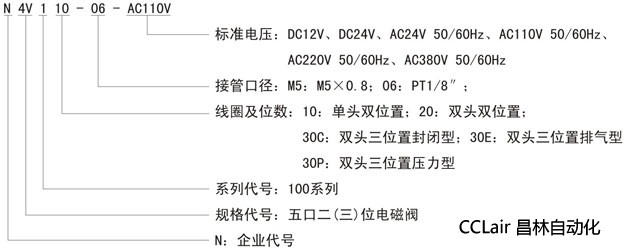 N4V100系列電磁閥適用于工作溫度-5℃~60℃,電源電壓為DC12V~24V、AC24V~380V、50~60Hz、介