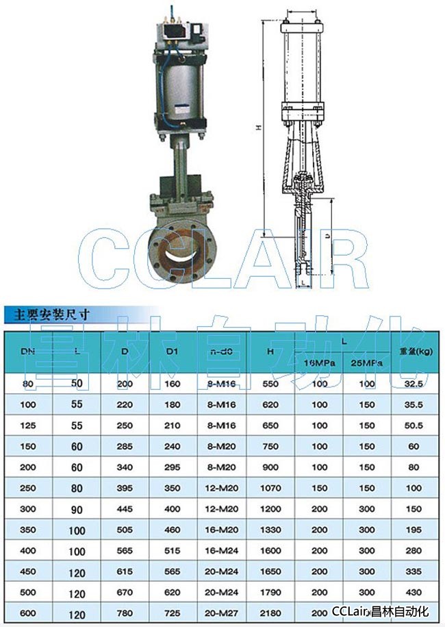 PZ673YF-0.6/25-DN80-600,氣動刀型閘閥