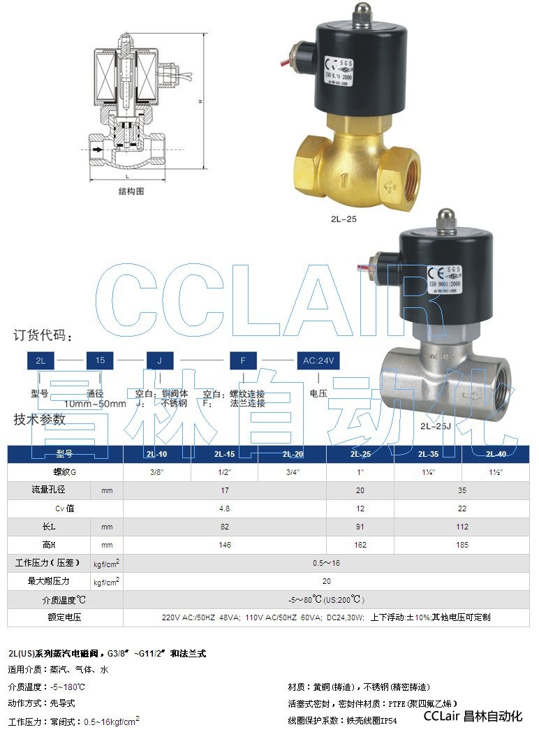 2L-10,2L-15,2L-20,2L-25,2L-35,2L-40, 蒸汽電磁閥,G3/8〞~G11/2〞和法蘭式
