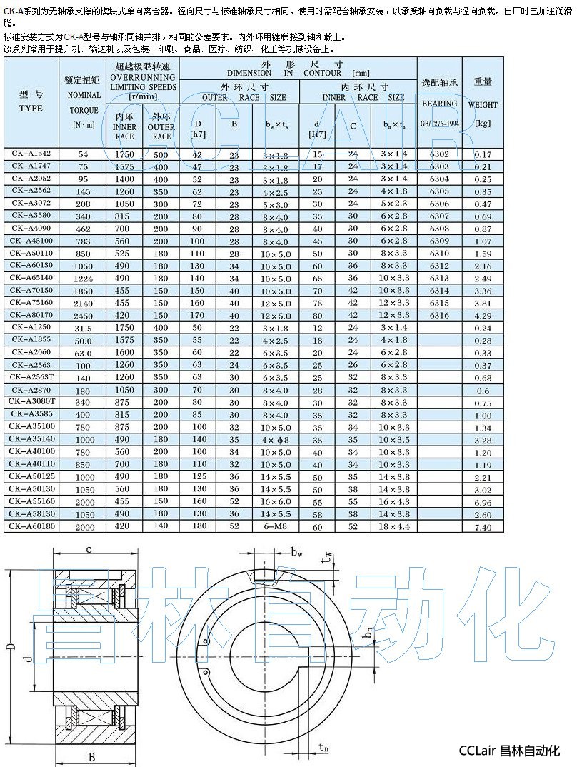 CK-A2060,CK-A2563,CK-A2563T,CK-A2870,單向離合器