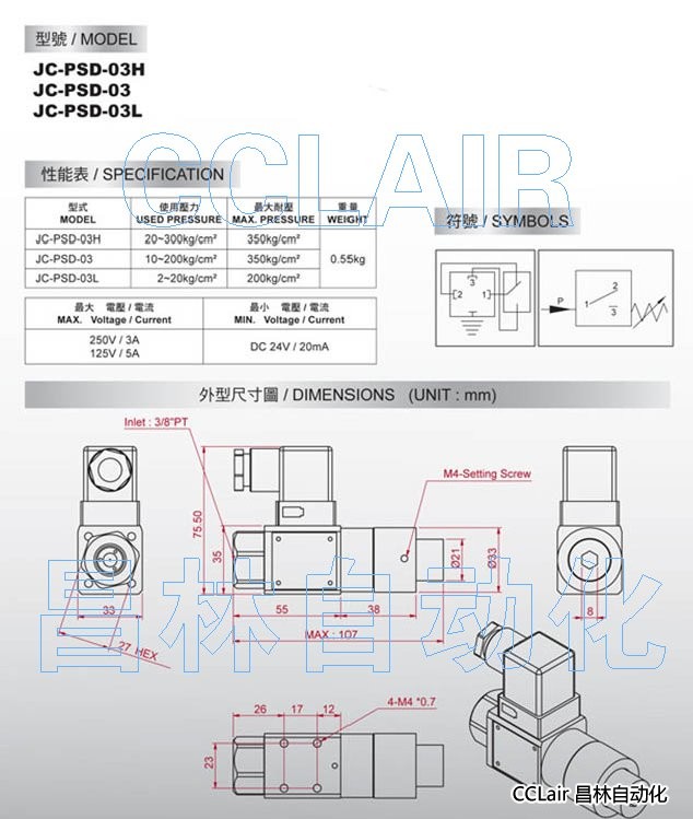 JC-PSD-03H, JC-PSD-03, JC-PSD-03L,壓力開關