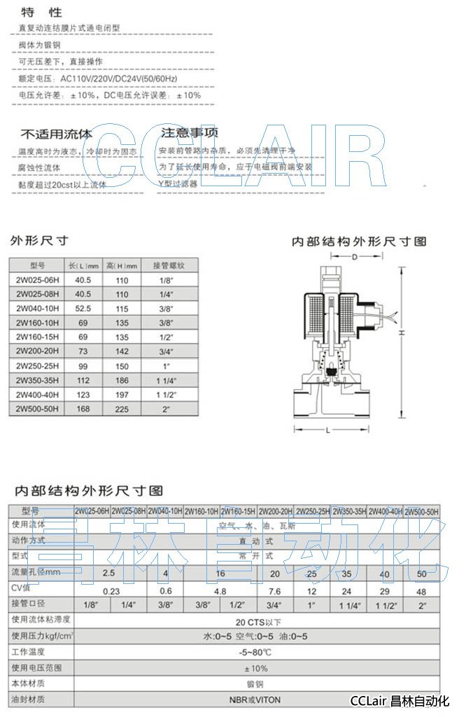 2W025-06H,2W025-08H,2W040-10H,2W160-10H,銅二位二通直動式電磁閥(常開型)