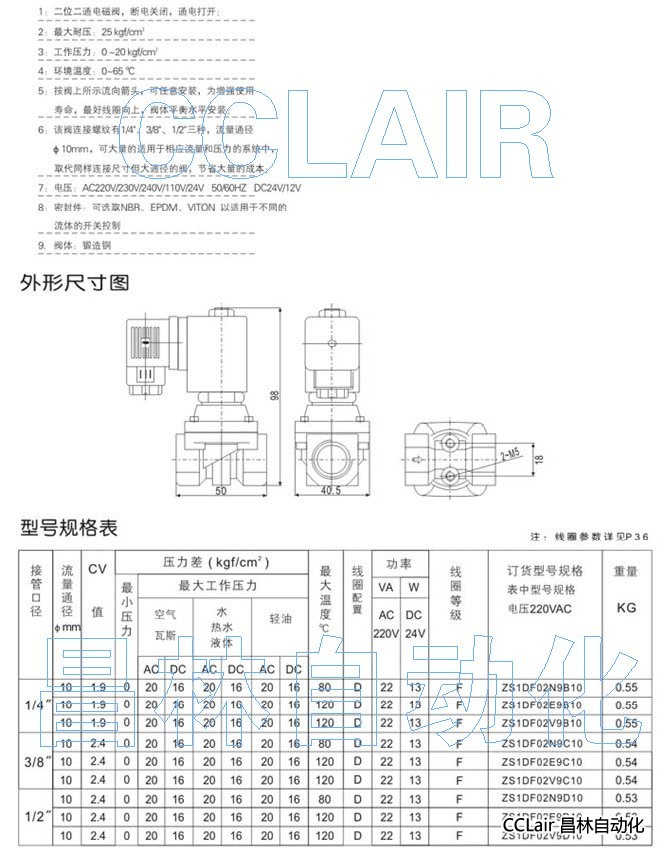 ZS1DF02N9B10,ZS1DF02E9B10,二位二通直動式電磁閥(常閉型)