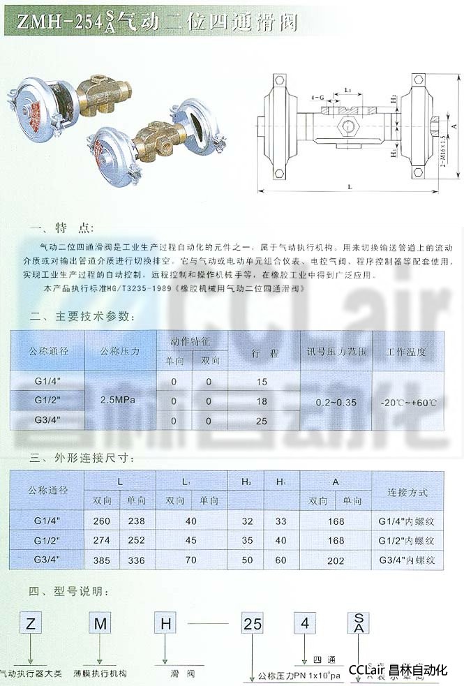ZMH-254S,ZMH-254A,氣動(dòng)二位四通滑閥