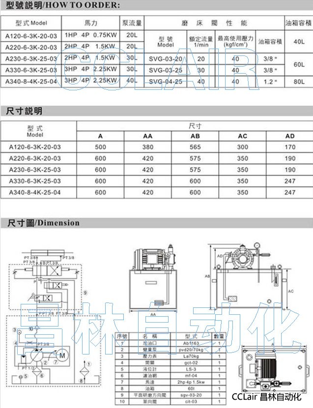 A115-4,A120-4,A220-4,A230-6,A240-6,A330-9,A340-9,A530-9,動力單元