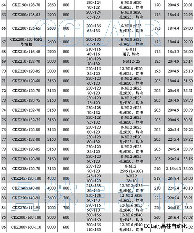 CKZ75*47-14,CKZ77*63-19,CKZ80*64-20,CKZ80*62-30,CKZ89*70-18 |
