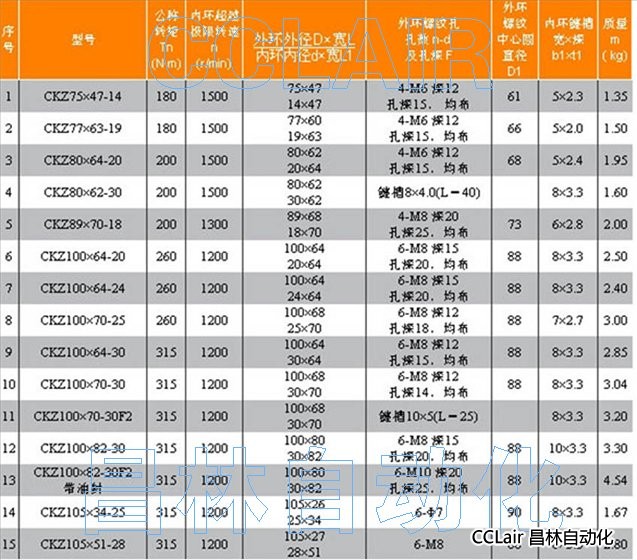 CKZ75*47-14,CKZ77*63-19,CKZ80*64-20,CKZ80*62-30,CKZ89*70-18,單向超越離合器 |