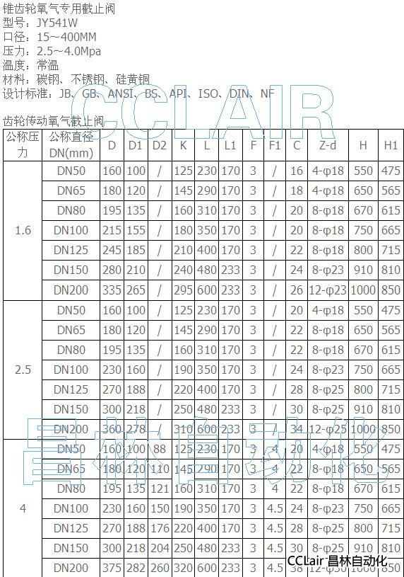 JY541W-16-DN50,JY541W-16-DN65,JY541W-25-DN50,JY541W-40-DN50,錐齒輪氧氣截止閥