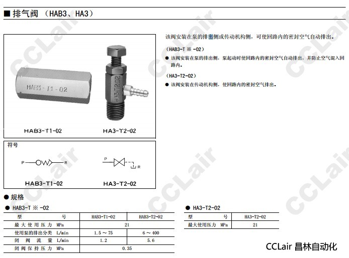 HAB3-T1-02,HA3-T2-02, 排氣閥