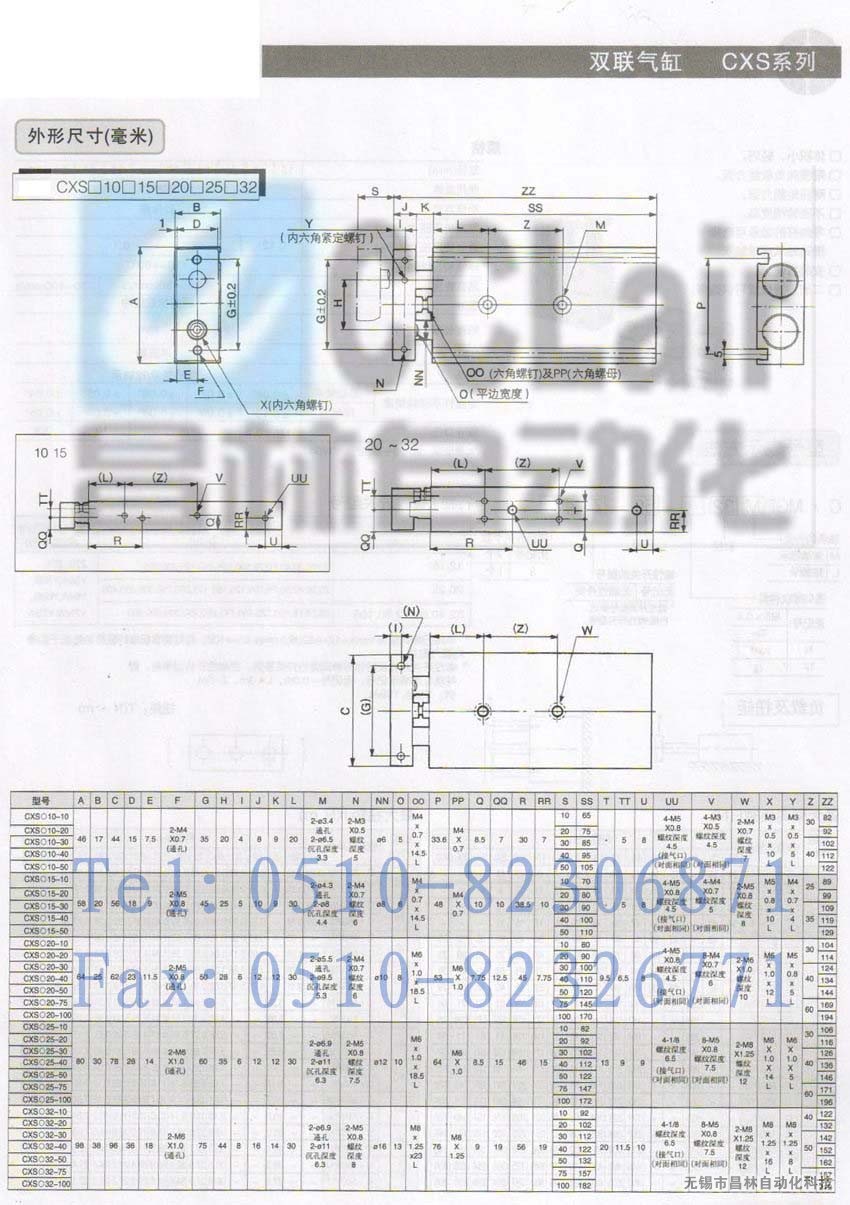 CXSL20-80,CXSL20-90,CXSL20-100,CXSL25-10-Z73,雙聯(lián)氣缸,