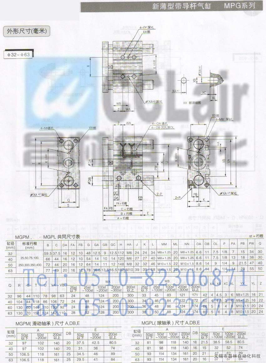 MGPL25N-200,MGPL25N-250,MGPL25N-300,MGPL25N-350,新薄型帶導桿氣缸