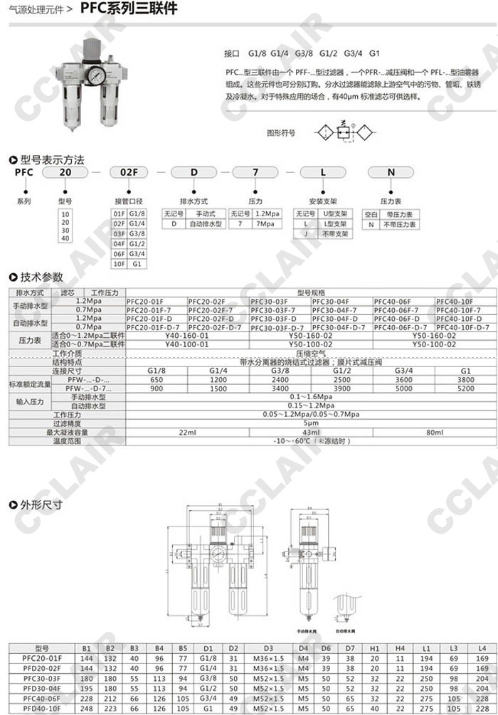 PFC20-01F,PFC20-02F,PFC20-03F,PFC20-04F,PFC20-06F,PFC20-10F,氣動三聯(lián)件