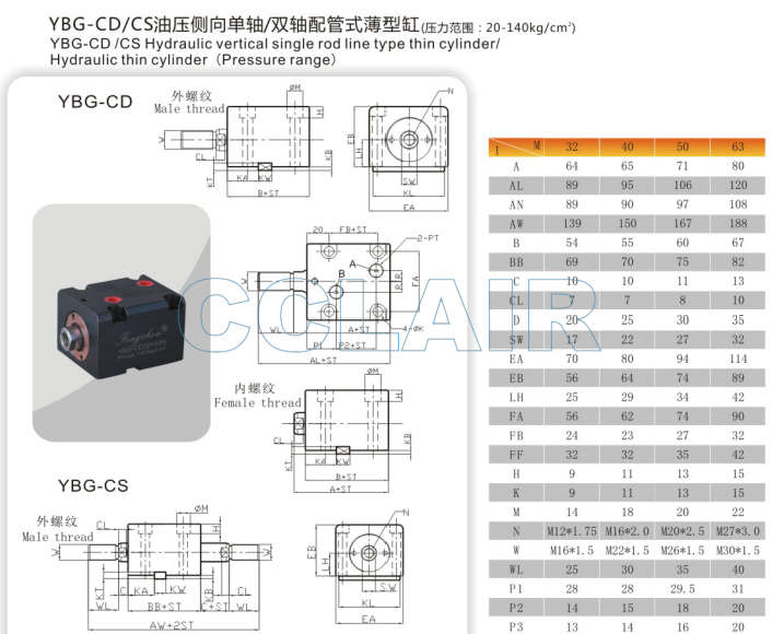 YBG-CD32,YBG-CD40,YBG-CD50,YBG-CD63,配管式薄型缸
