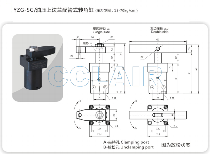 YZG-SG25,YZG-SG32,YZG-SG40,YZG-SG50,YZG-SG63,油壓上法蘭配管式轉(zhuǎn)角缸,