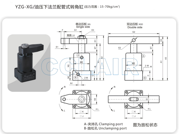 YZG-XG25,YZG-XG32,YZG-XG40,YZG-XG50,YZG-XG63,油壓下法蘭配管式轉(zhuǎn)角缸,無錫昌林